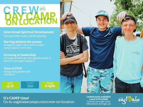 Crew is an opportunity for late middle school and high school students to not just take part in a week of camp, but learn to lead alongside the counselors.